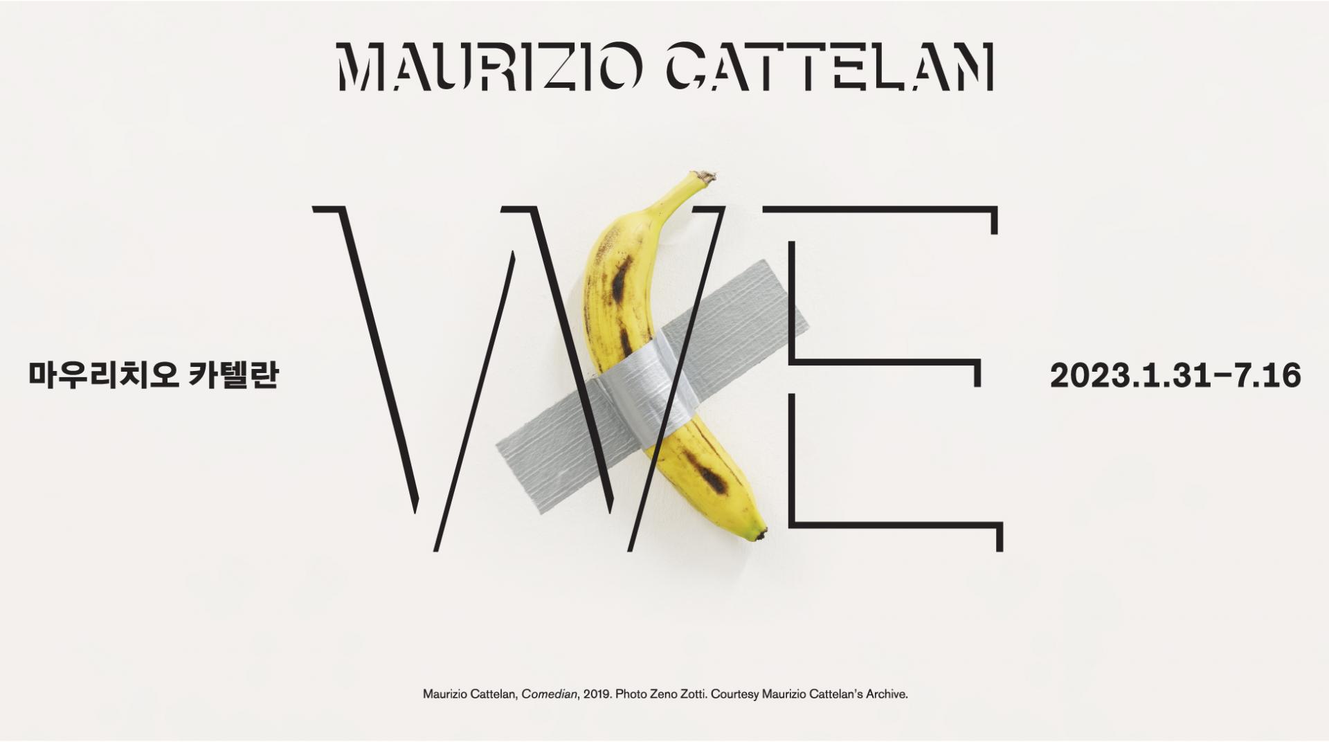 2023년, 리움미술관은 전 세계적으로 가장 논쟁적인 작가로 알려진 마우리치오 카텔란의 첫 전시인 <WE>를 개최했다. 이번 전시는 90년대부터 현재까지 카텔란의 작품 중 38점으로 구성되어 있으며, 그의 작품은 보기에 단순하고 바로 이해할 수 있는 극사실적 조각과 회화가 주를 이룹니다. 하지만, 이 작가의 작품에는 그 내면에 숨겨진 현실 비판과 진실에 대한 냉소적이고 비꼬는 태도가 함축되어 있습니다. 미술사를 슬쩍 도용하거나 익숙한 대중적 요소를 교묘히 이용하는 그의 작품은 무례하고 뻔뻔한 태로로 우리 인식의 근간을 순식간에 뒤엎어버리며, 불편한 진실을 직시하게 합니다.