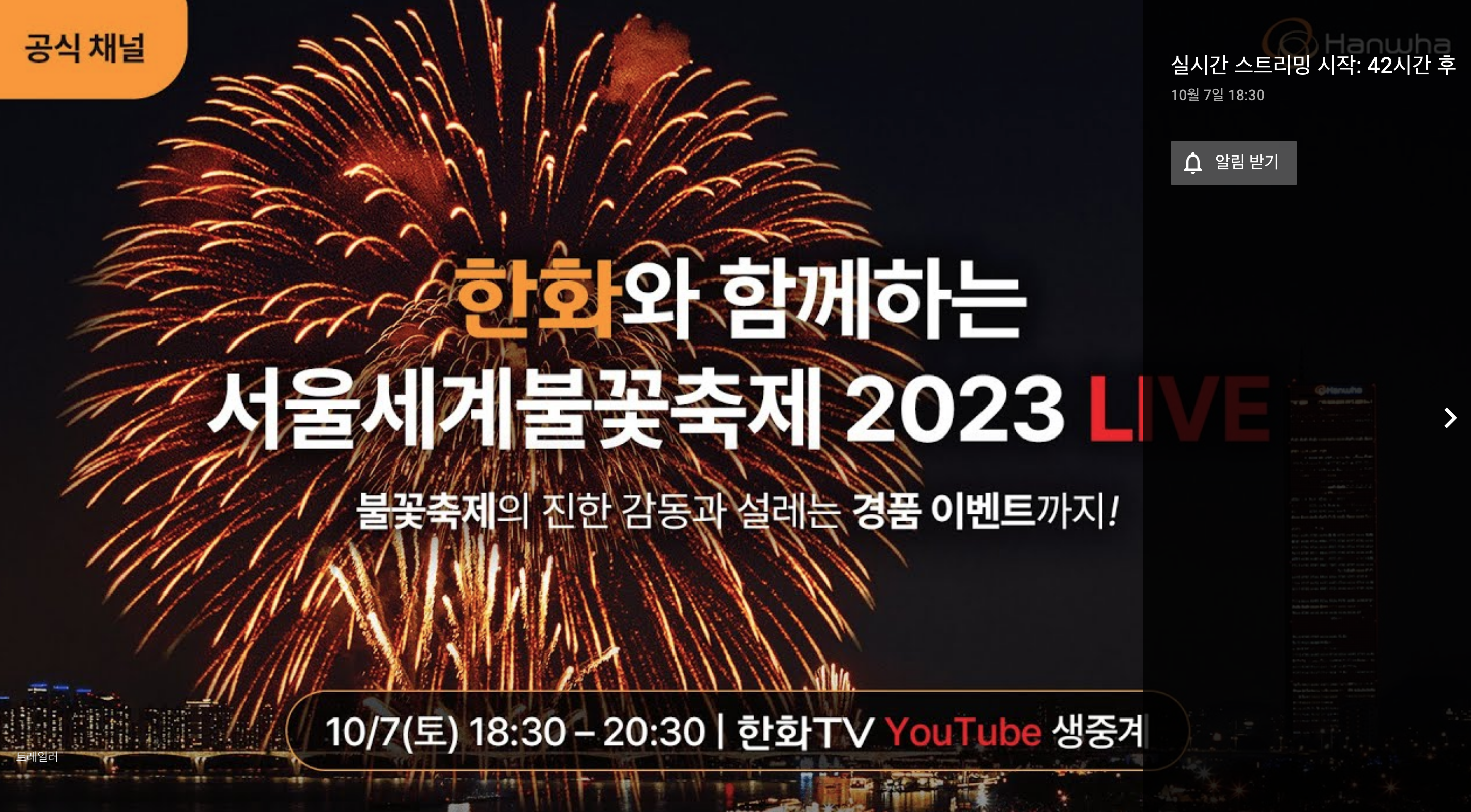 ○ 유튜브채널 : 한화TV 유튜브
